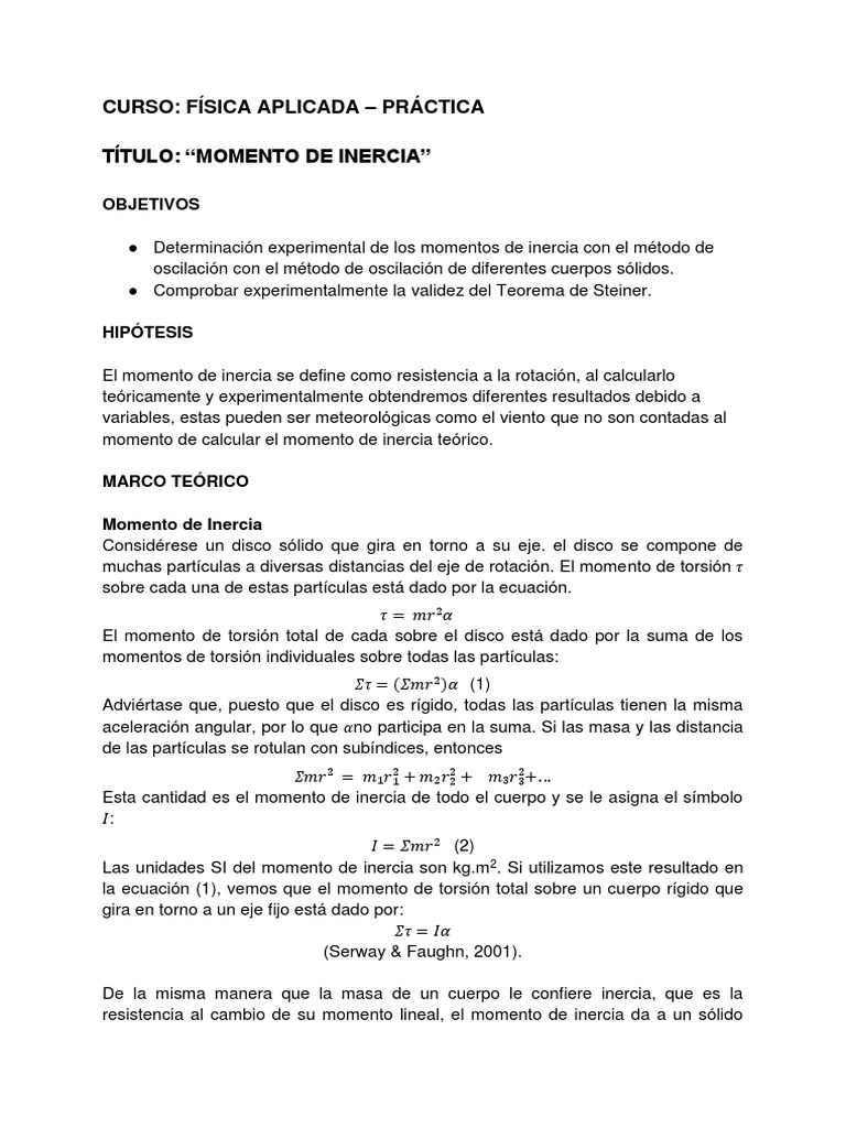 momento de calcular el momento de inercia teórico.