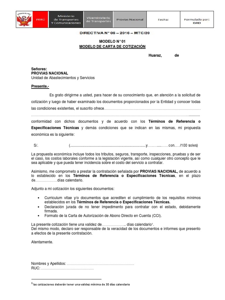 MODELO DE CARTA DE COTIZACIÓN