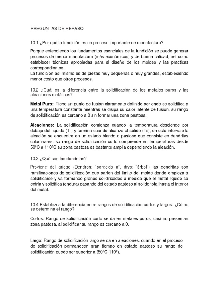 10.2 ¿Cuál es la diferencia entre la solidificación de los metales puros y las