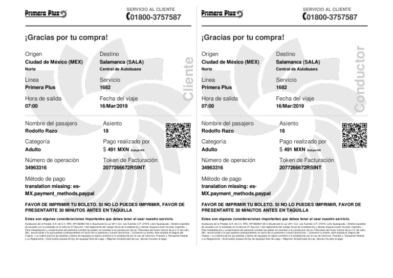 Autobuses de la Piedad, S.A. de C.V. RFC: API-660927-3E 0; Boulevard la Luz 2011 Col. Las Fuentes C.P. 37270, León Guanajuato. | Boleto expedido Autobuses de la Piedad, S.A. de C.V. RFC: API-660927-3E 0; Boulevard la Luz 2011 Col. Las Fuentes C.P. 37270, León Guanajuato. | Boleto expedido