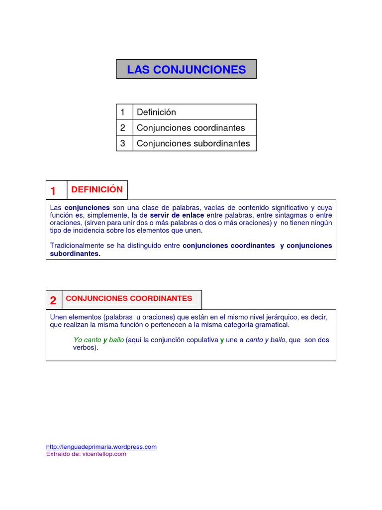 Las conjunciones son una clase de palabras, vacías de contenido significativo y cuya