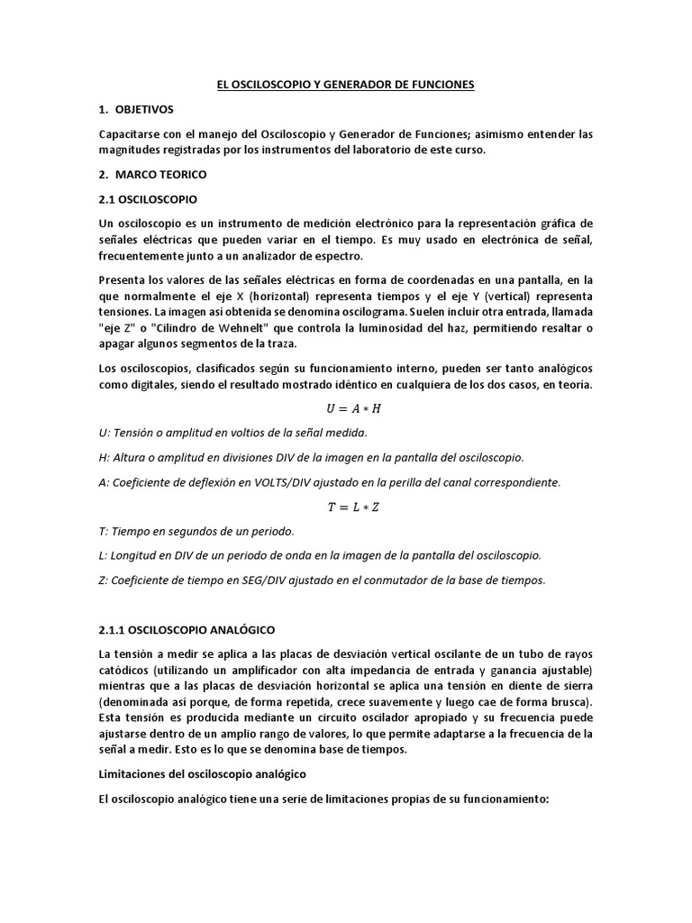 de los dos instrumentos que son: el osciloscopio y el generador de funciones.
