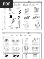 Este documento presenta dos ejercicios de razonamiento matemático para estudiantes de primer grado de primaria. Los estudiantes deben colorear el objeto que sigue en cada serie y completar secuencias numéricas.