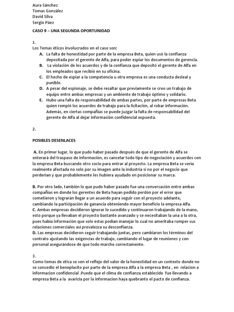 empresa Beta a la avaricia por la informacion haya quebranto el pacto de confianza.