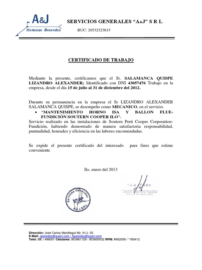 CERTIFICADO DE TRABAJO