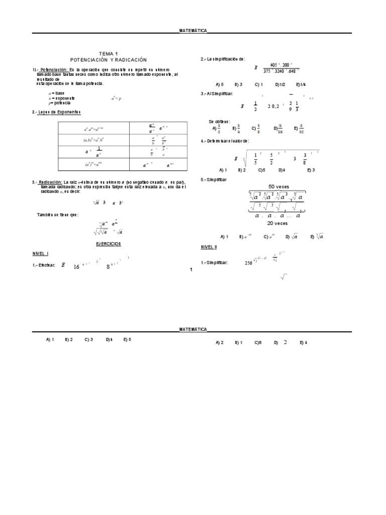 esta operación se le llama potencia. A) 5 B) 3 C) 1 D)1/2 E)1/4
