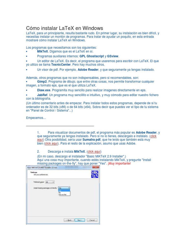 Aquí una cosa muy importante, cuando estés instalando MikTeX, y pregunte "Install
