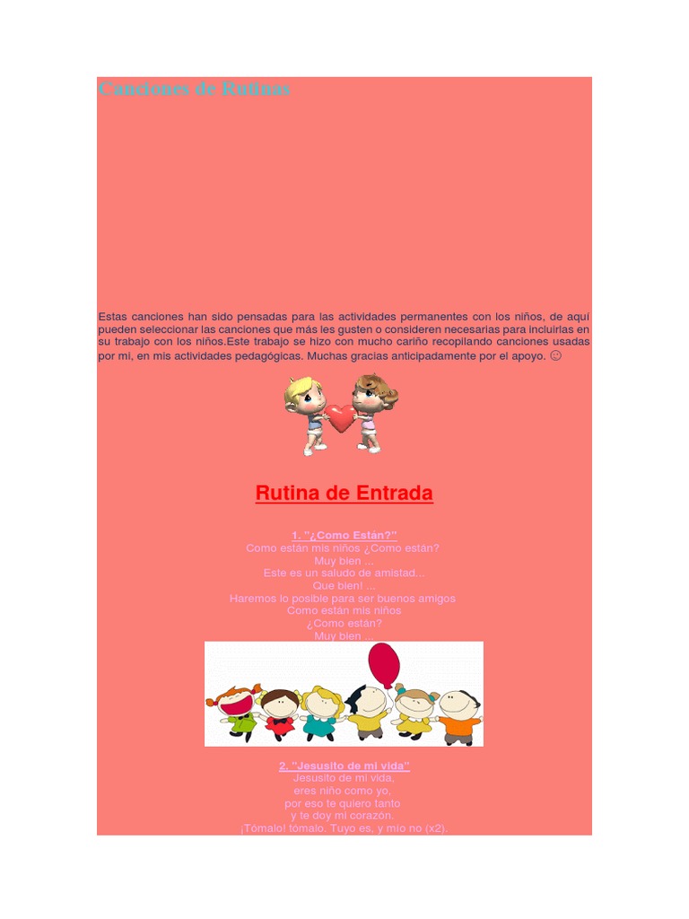 Estas canciones han sido pensadas para las actividades permanentes con los niños, de aquí