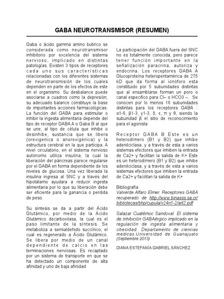 GABA NEUROTRANSMISOR (RESUMEN)