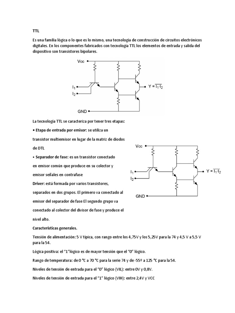digitales. En los componentes fabricados con tecnología TTL los elementos de entrada y salida del