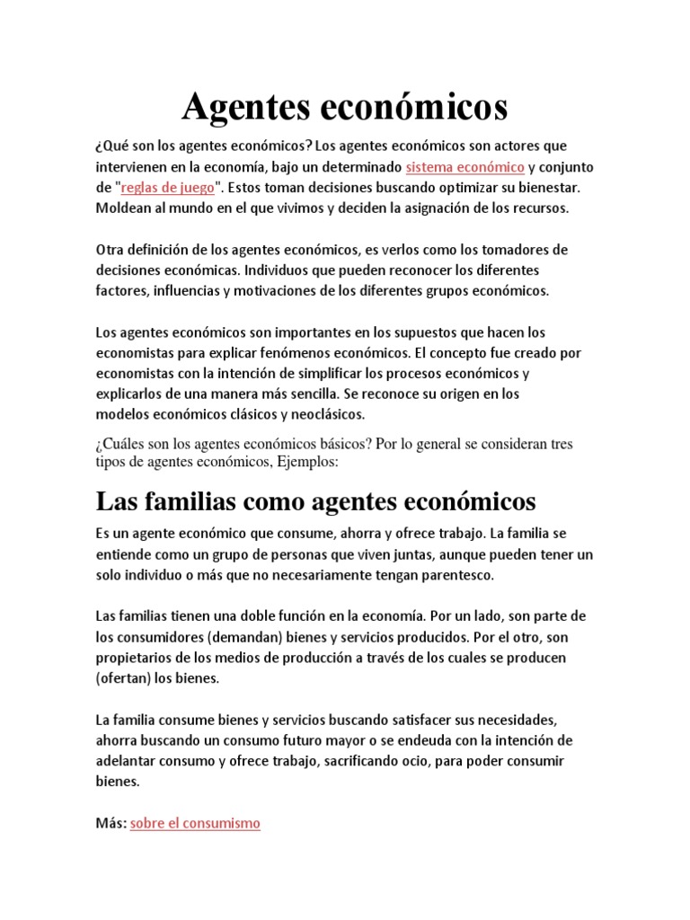 ¿Qué son los agentes económicos? Los agentes económicos son actores que