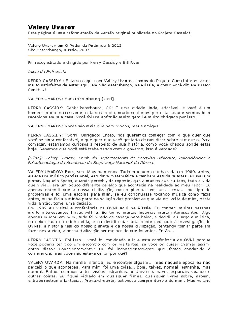 KERRY CASSIDY : Estamos aqui com Valery Uvarov, somos do Projeto Camelot e estamos