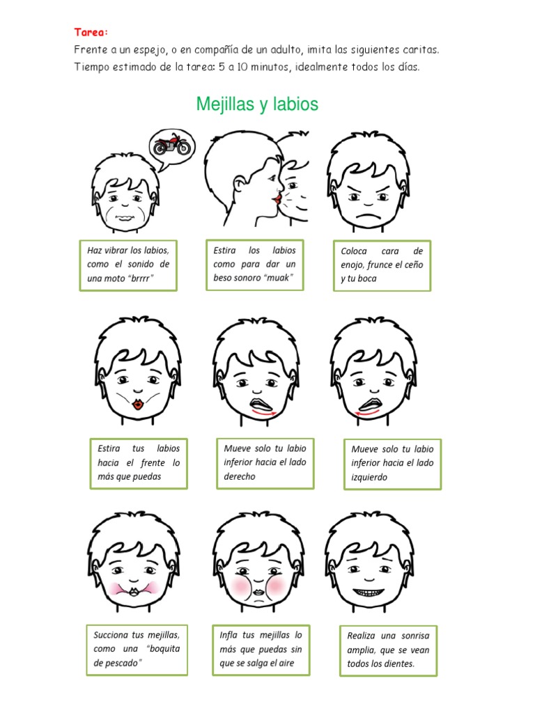 Frente a un espejo, o en compañía de un adulto, imita las siguientes caritas.