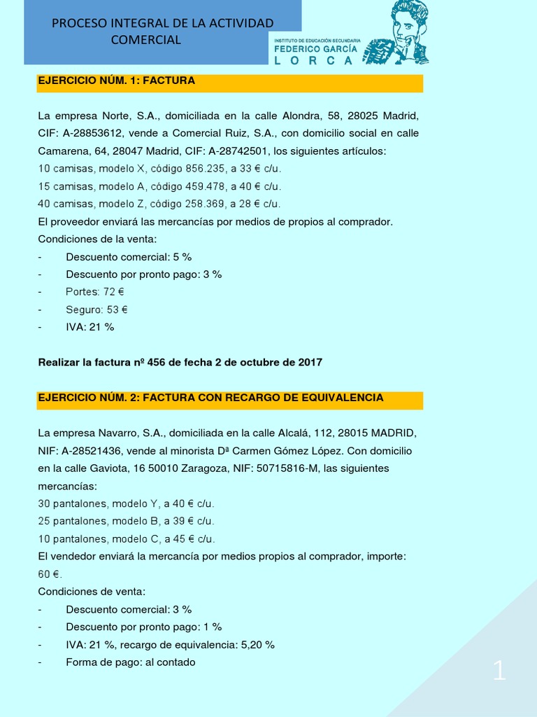 EJERCICIO NÚM. 1: FACTURA
