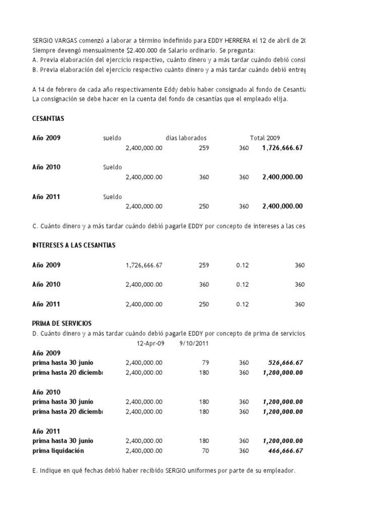 A. Previa elaboración del ejercicio respectivo, cuánto dinero y a más tardar cuándo debió consignarle EDDY por concepto de