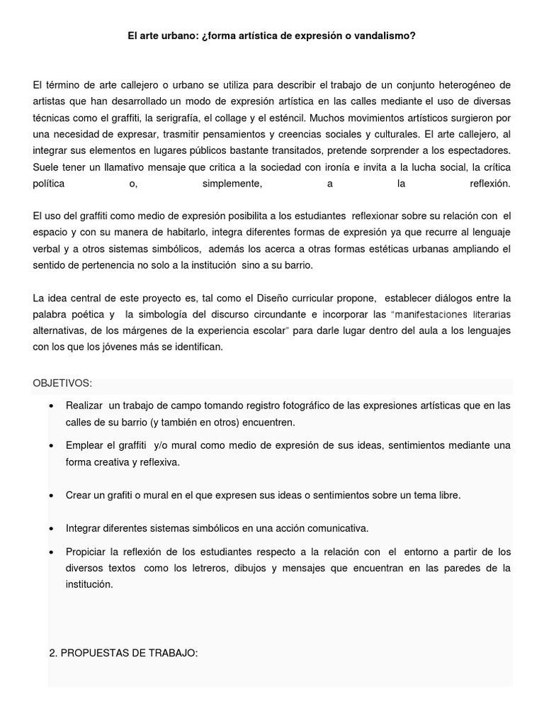 El uso del graffiti como medio de expresión posibilita a los estudiantes reflexionar sobre su relación con el