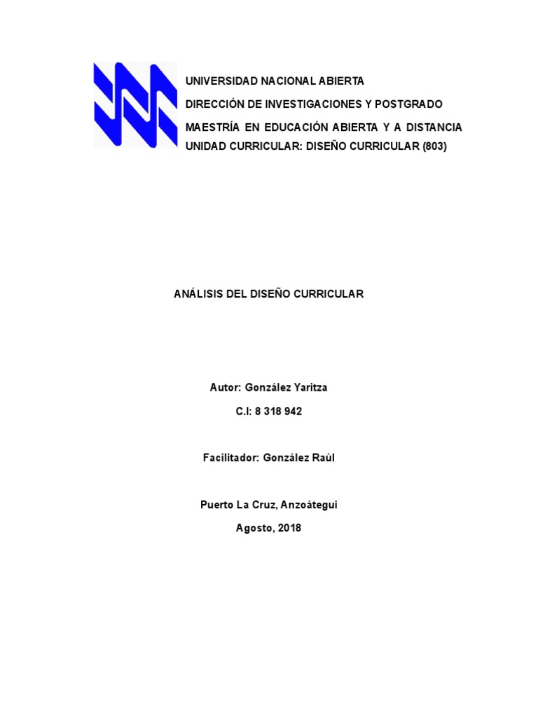 UNIDAD CURRICULAR: DISEÑO CURRICULAR (803)