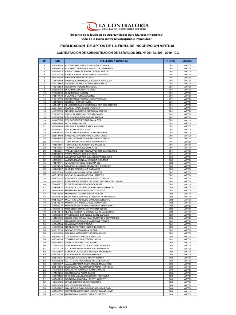N° DNI APELLIDOS Y NOMBRES N° CAS ESTADO