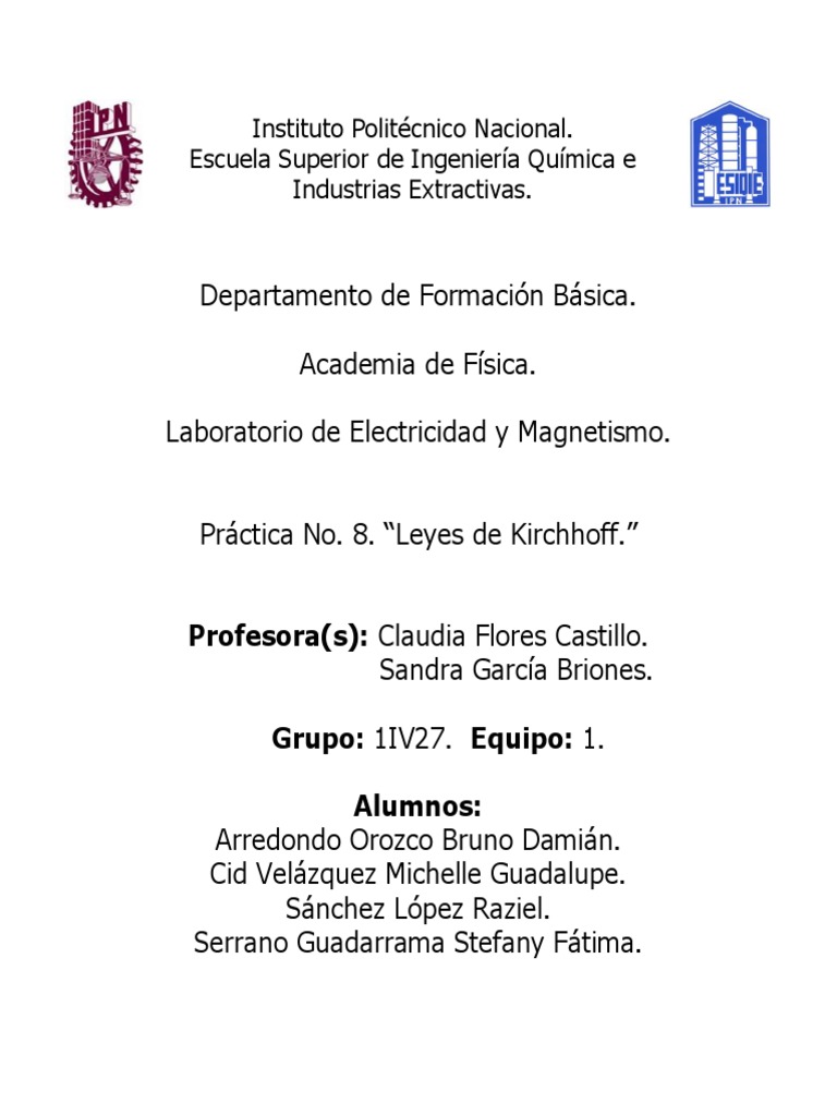 Práctica No. 8. “Leyes de Kirchhoff.”
