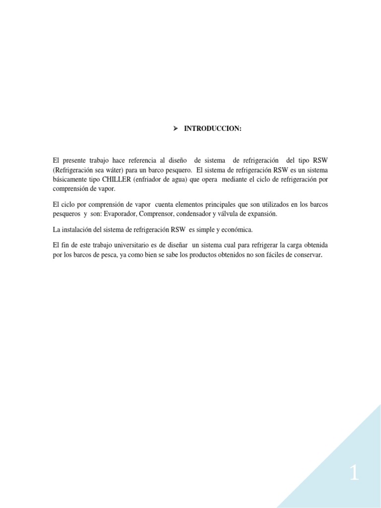 El presente trabajo hace referencia al diseño de sistema de refrigeración del tipo RSW