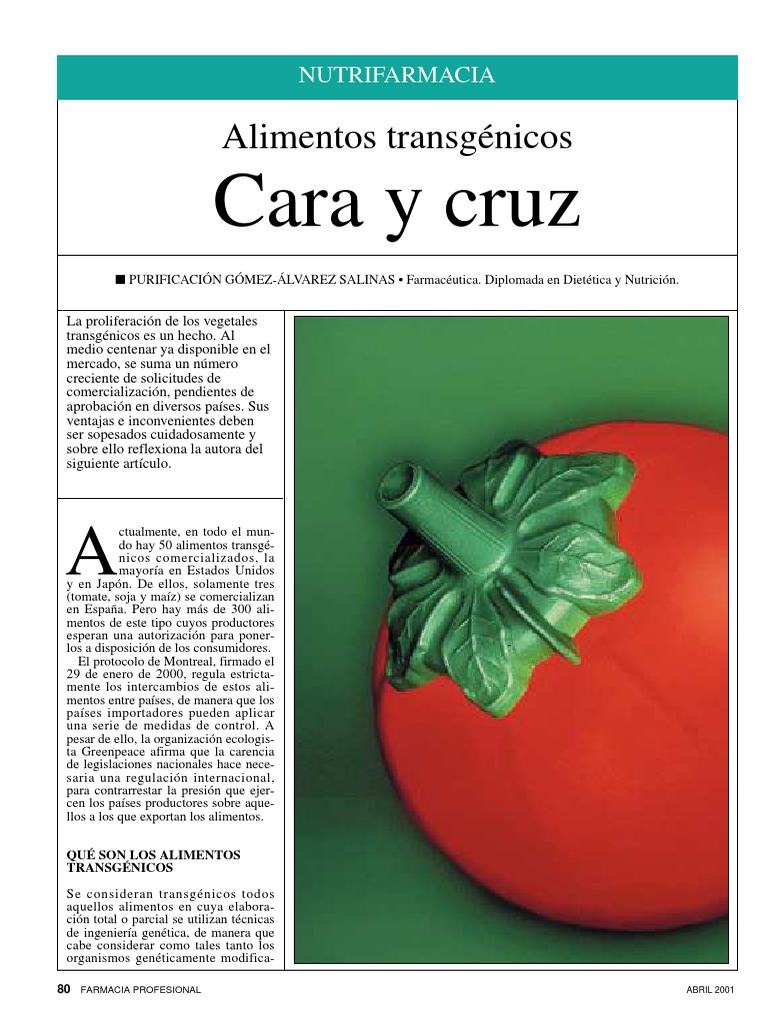 ción de alimentos transgénicos con la