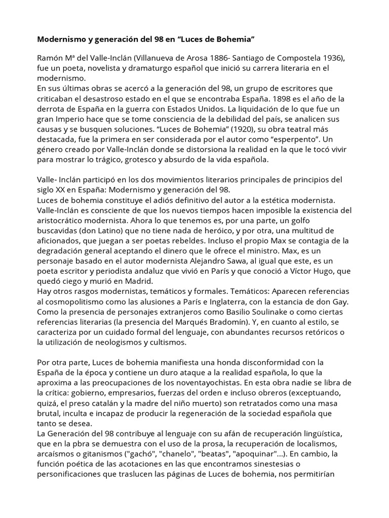 Modernismo y generación del 98 en “Luces de Bohemia”