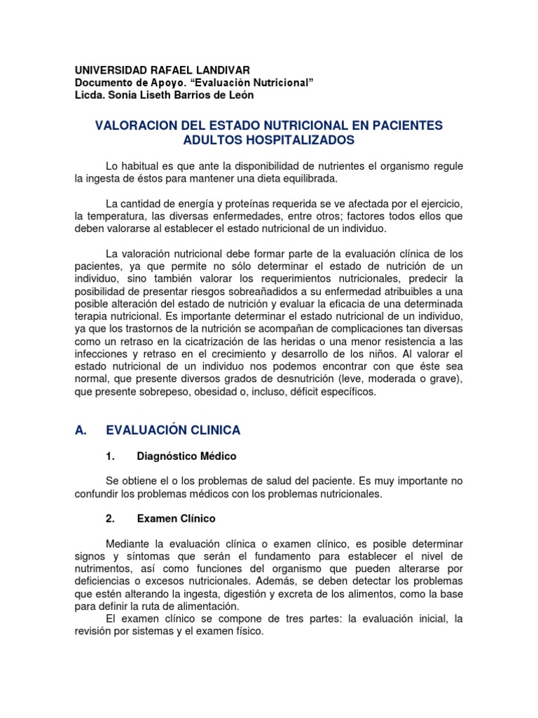 La valoración nutricional debe formar parte de la evaluación clínica de los