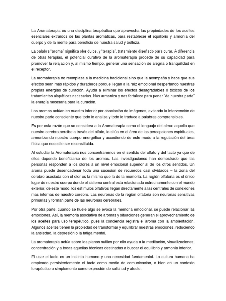 los aceites para uso terapéutico, pues la conciencia registra el aroma con la ambientación.