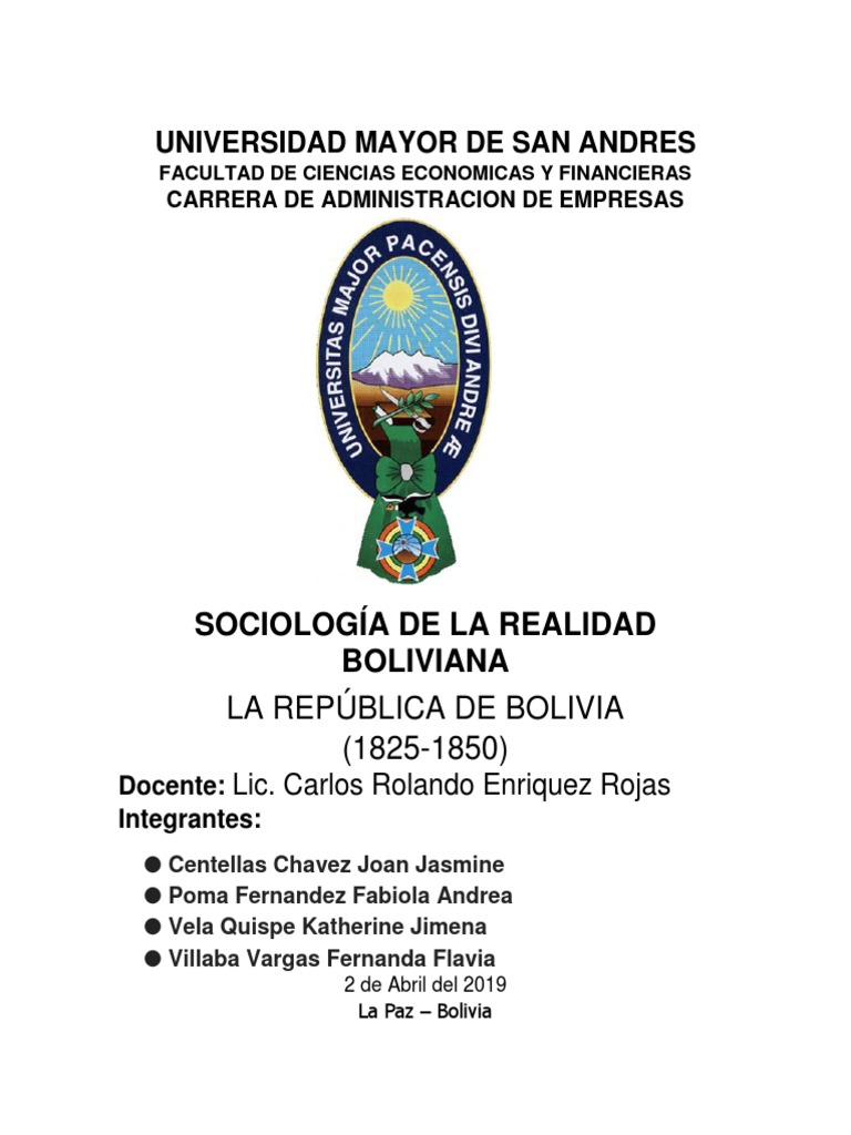 Aires y Lima. Bolivia se constituyó como nación independiente sobre la siguiente base