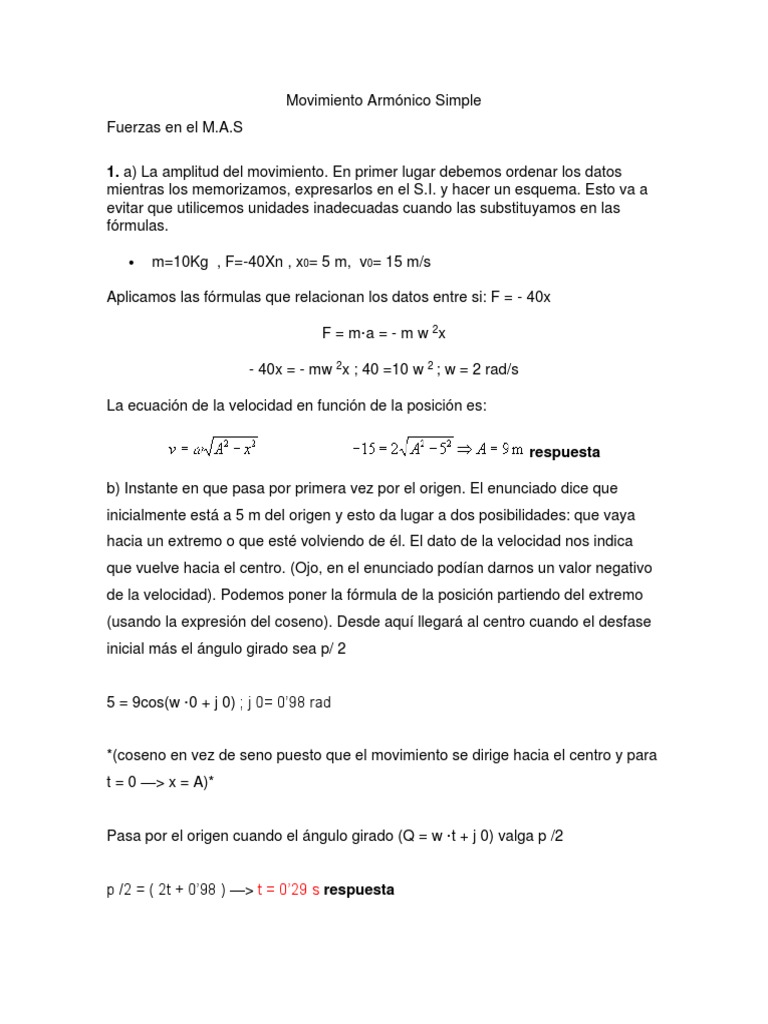 c)Sabemos que la fuerza en el MAS es una elástica, es decir, F = -kx, como la