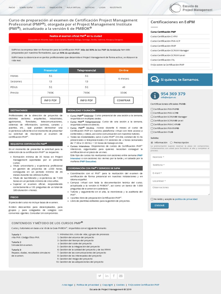 puertos, etc... que puedan demostrar una Curso PMP® On-line. Acceso durante 6 meses al curso de Certificación PMI-RMP®