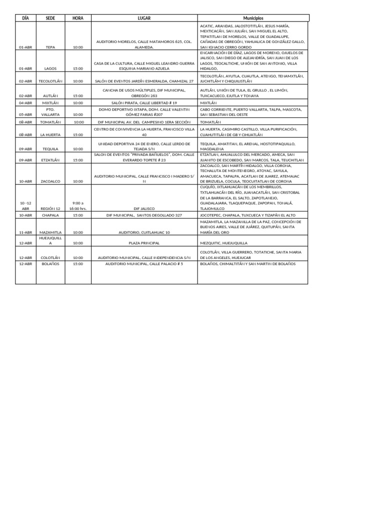10-ABR CHAPALA 15:00 DIF MUNICIPAL, SANTOS DEGOLLADO 327 JOCOTEPEC, CHAPALA, TUXCUECA Y TIZAPÁN EL ALTO