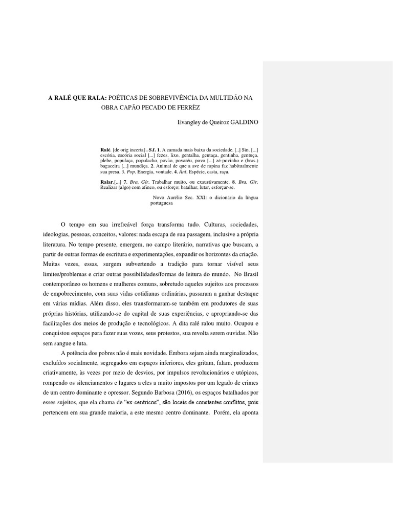 ______________. Vidas Precárias. Revista Contemporânea, 1, p. 13-23, 2011. Commented [JV5]: Ter cuidado nesses espaçamentos