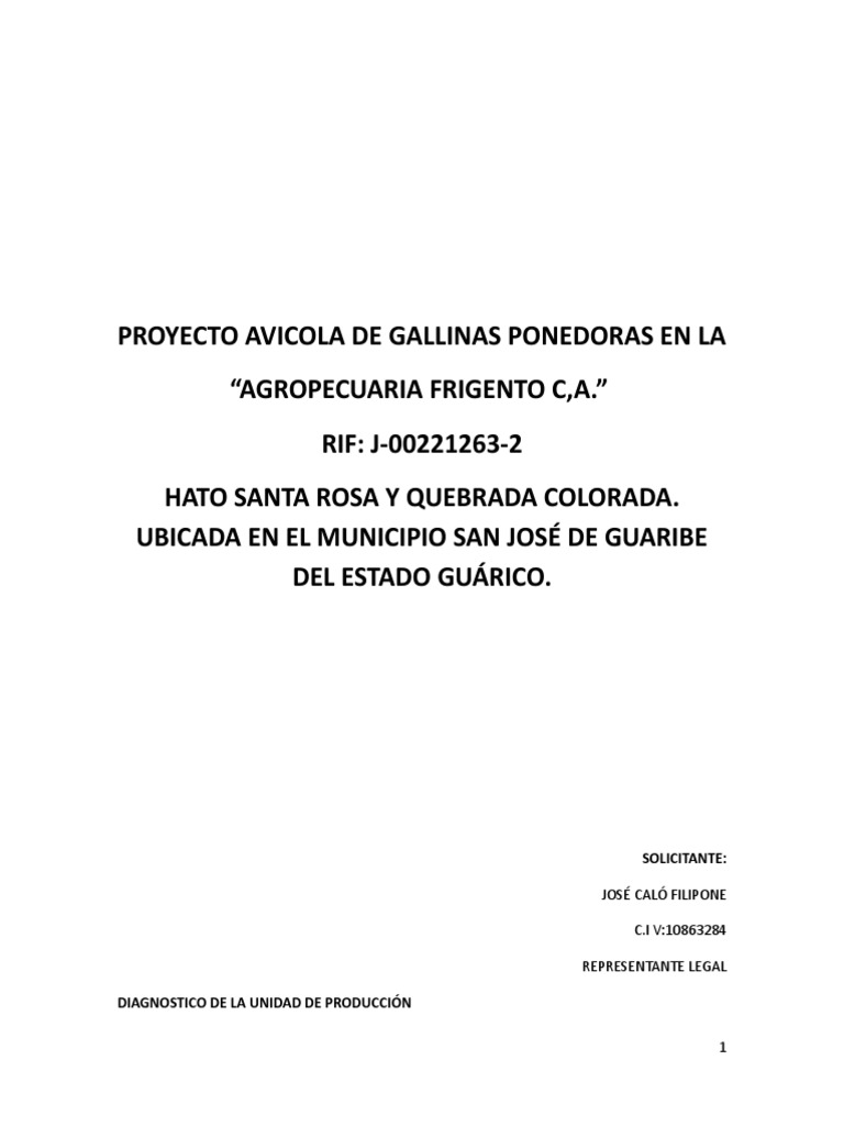 PROYECTO AVICOLA DE GALLINAS PONEDORAS EN LA