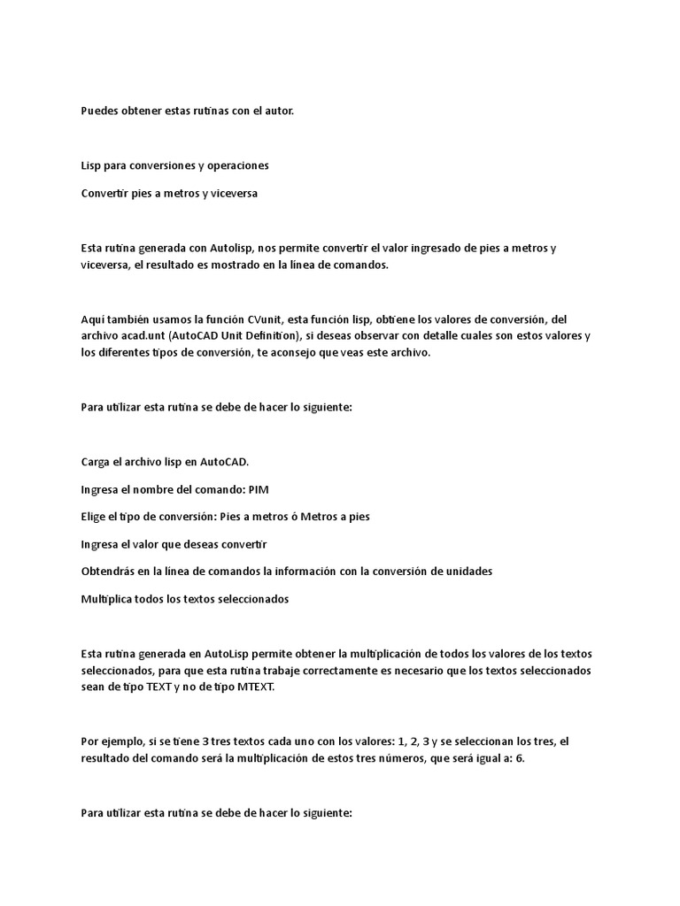 Esta rutina generada con Autolisp, nos permite convertir el valor ingresado de pies a metros y