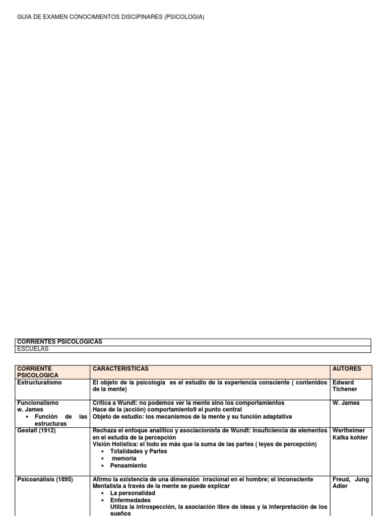 Distingue las características de las distintas teorías psicológicas (psicoanálisis, Gestalt, conductismo, humanismo, cognoscitivo, psicogenética,) para conocer la