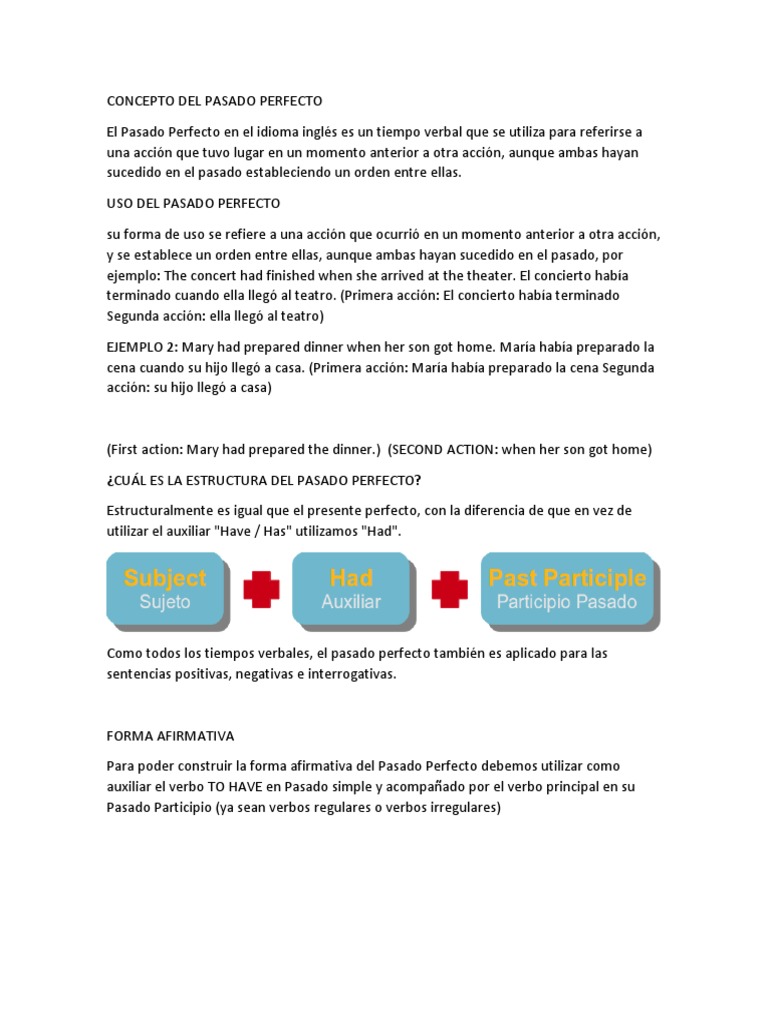 ¿CUÁL ES LA ESTRUCTURA DEL PASADO PERFECTO?