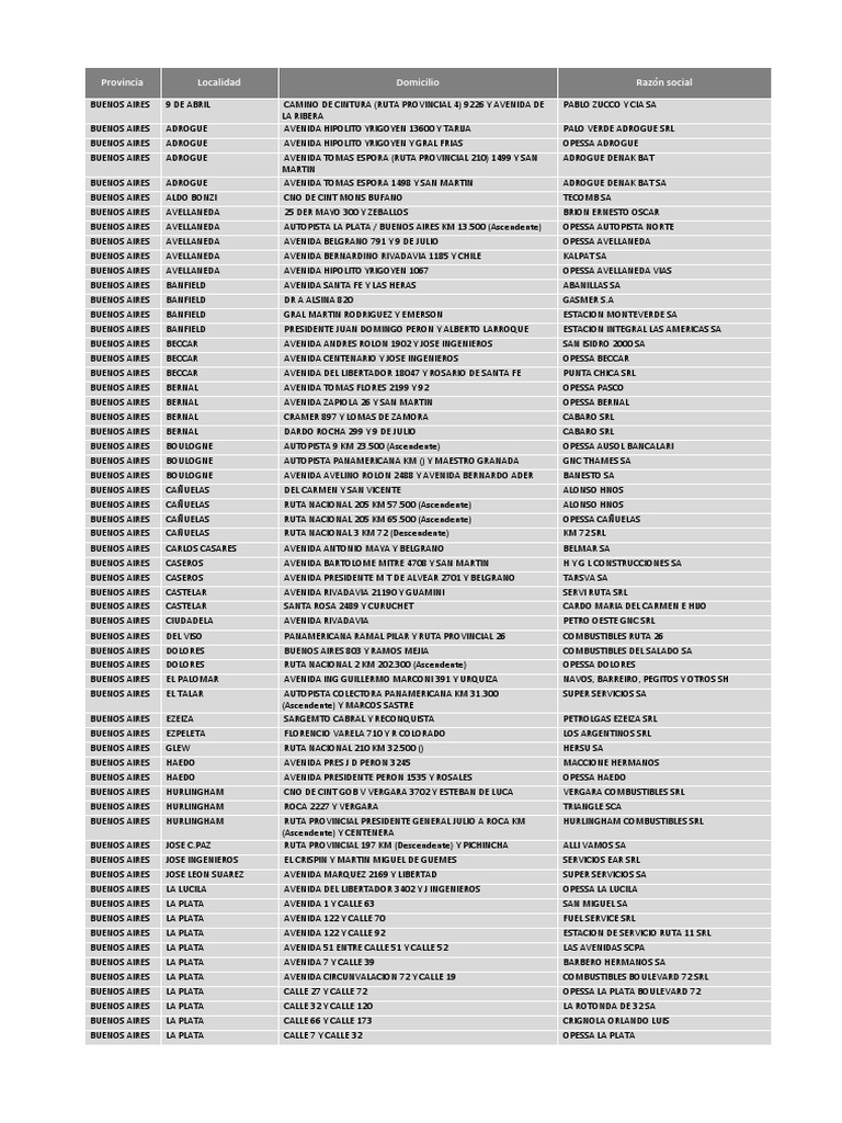 BUENOS AIRES MARTINEZ HIPOLITO YRIGOYEN 1598 Y FLEMING ESTACION DE SERVICIOS POSADAS SRL