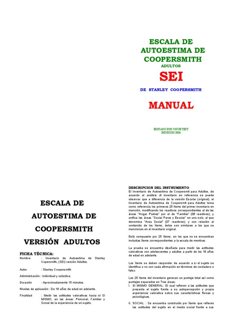 El Inventario de Autoestima de Coopersmit para Adultos, de