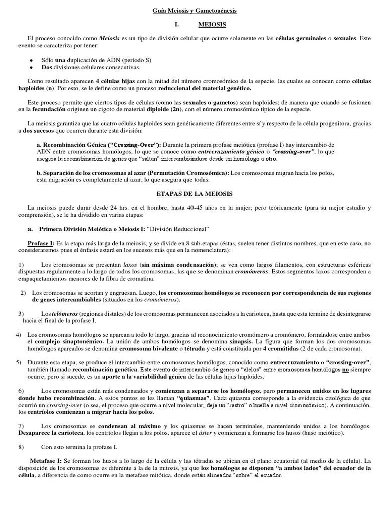 Guía Meiosis y Gametogénesis