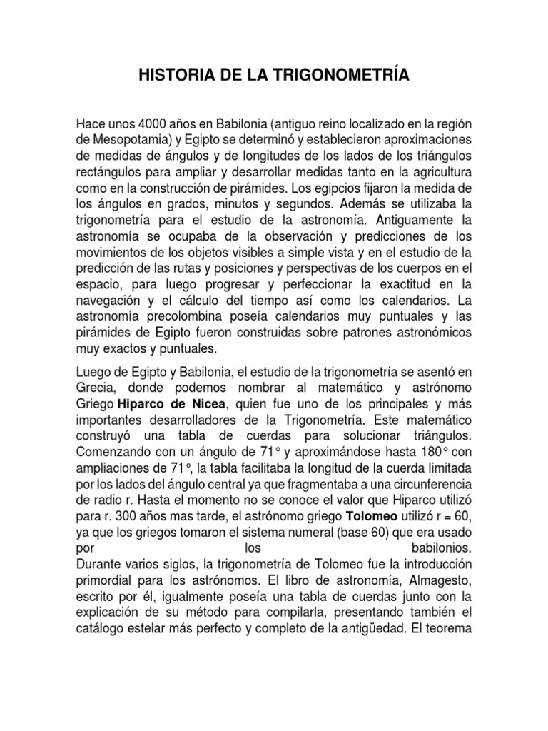 trigonometría para el estudio de la astronomía. Antiguamente la