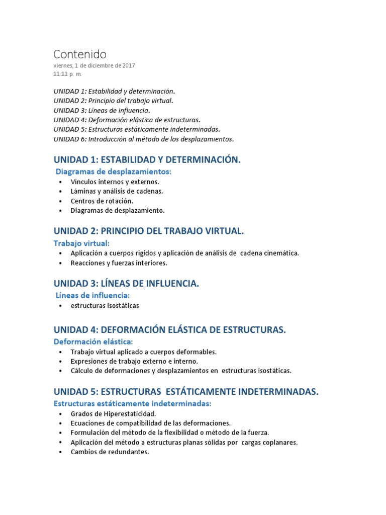 métodos de cálculo válidos para estructuras isostáticas e hiperestáticas regidas por un