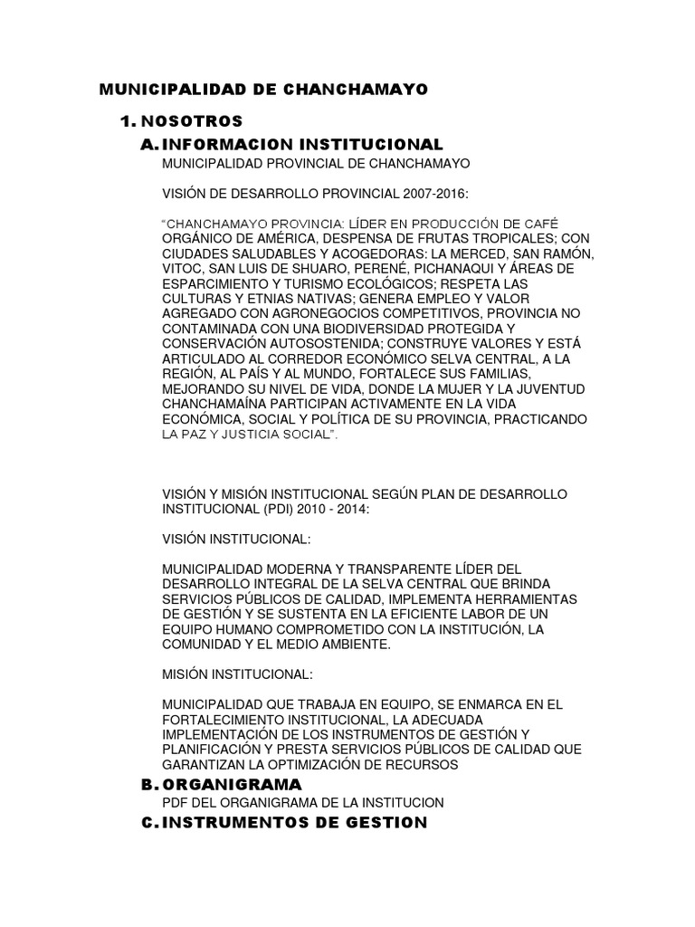 MUNICIPALIDAD PROVINCIAL DE CHANCHAMAYO