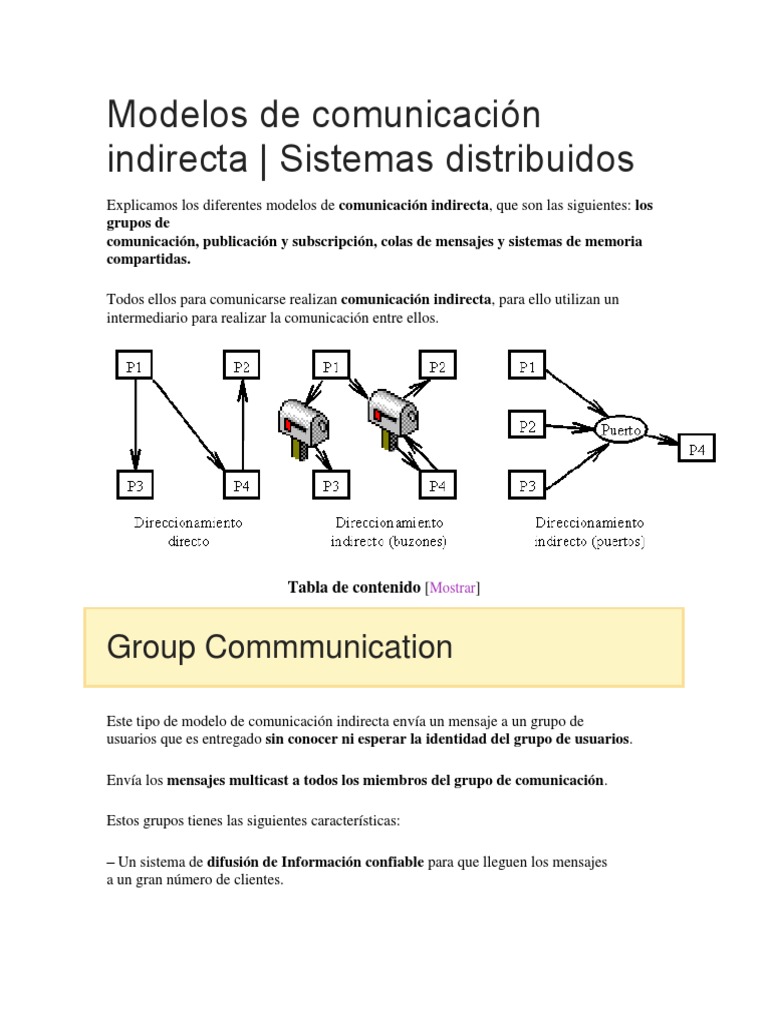 Explicamos los diferentes modelos de comunicación indirecta, que son las siguientes: los