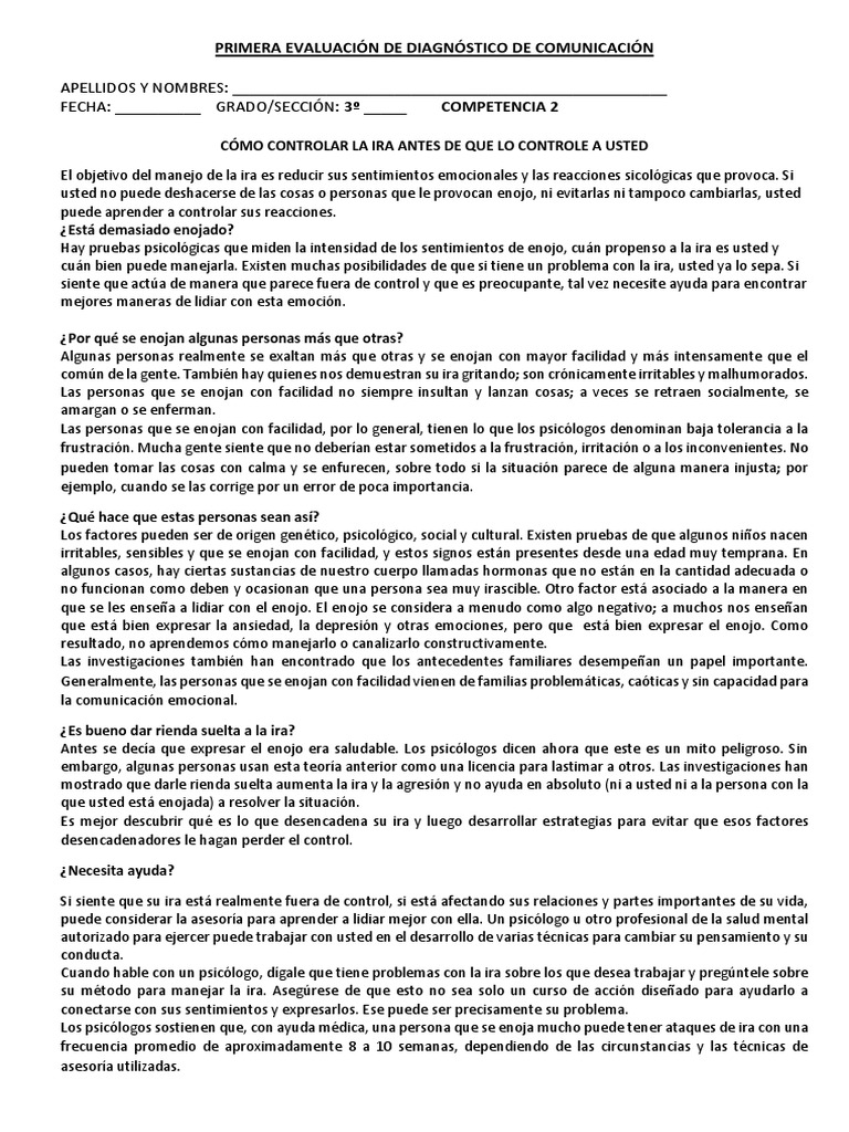 PRIMERA EVALUACIÓN DE DIAGNÓSTICO DE COMUNICACIÓN