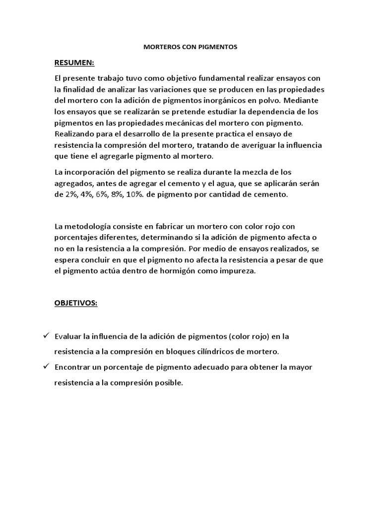 pigmentos en las propiedades mecánicas del mortero con pigmento.