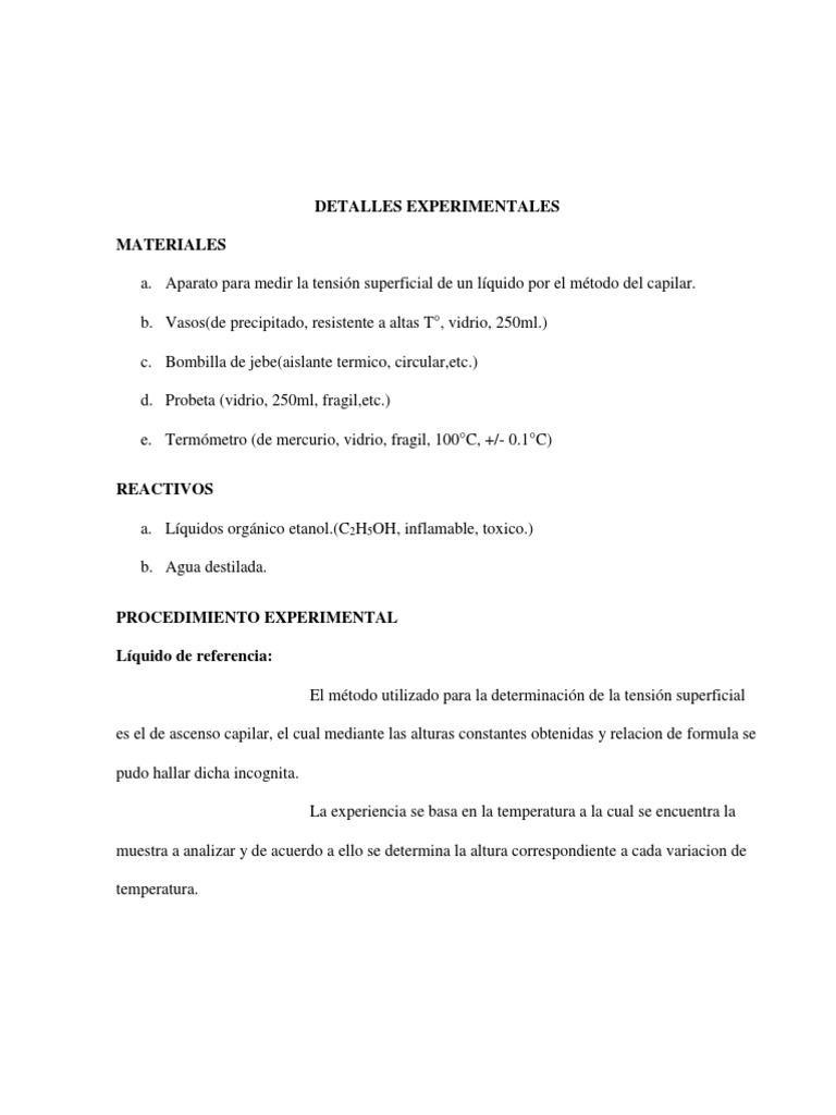 el Manual del Ingeniero Químico de Perry, y la relación de alturas que asciende en el capilar