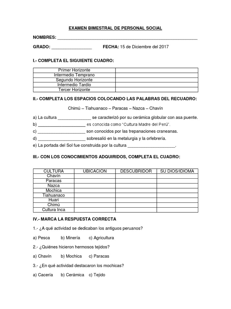EXAMEN BIMESTRAL DE PERSONAL SOCIAL