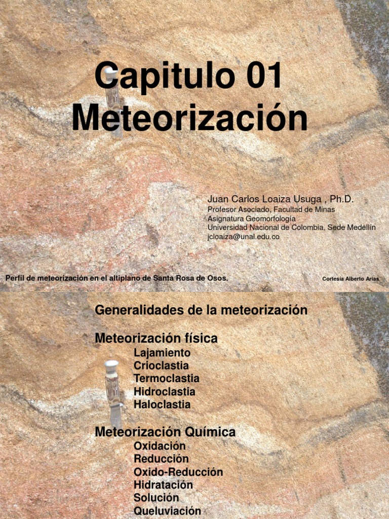 Meteorización acción de factores Humedad - Temperatura - Presión