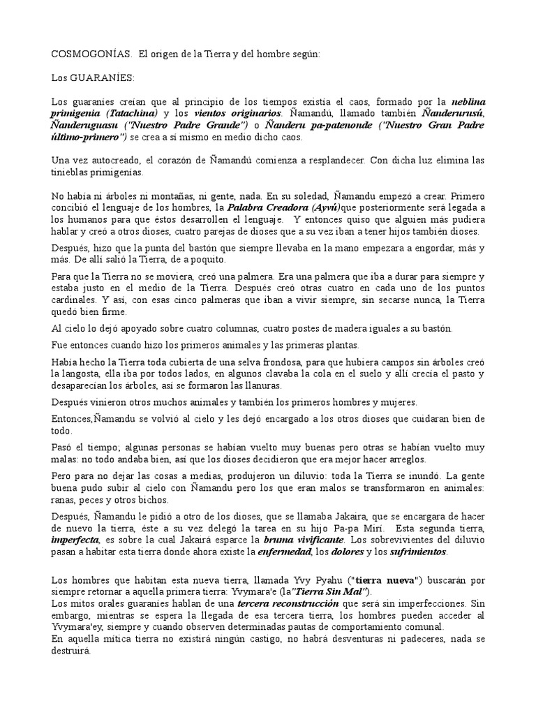 Los mitos orales guaraníes hablan de una tercera reconstrucción que será sin imperfecciones. Sin